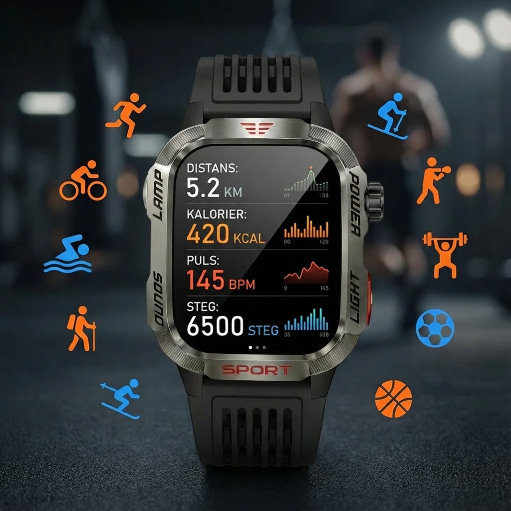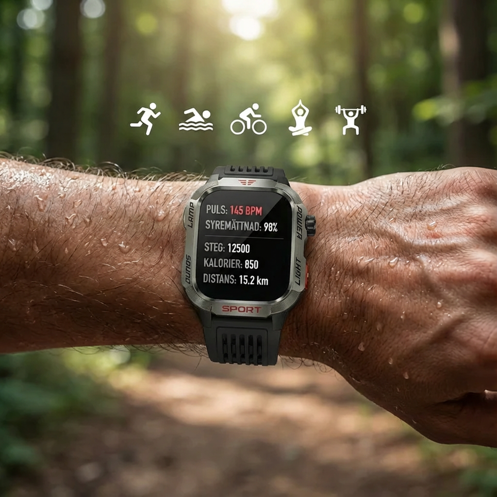Ranger Pro spårar puls, syremättnad och sömn automatiskt. Med över 100 sportlägen följer klockan varje träningspass – från löpning till yoga.